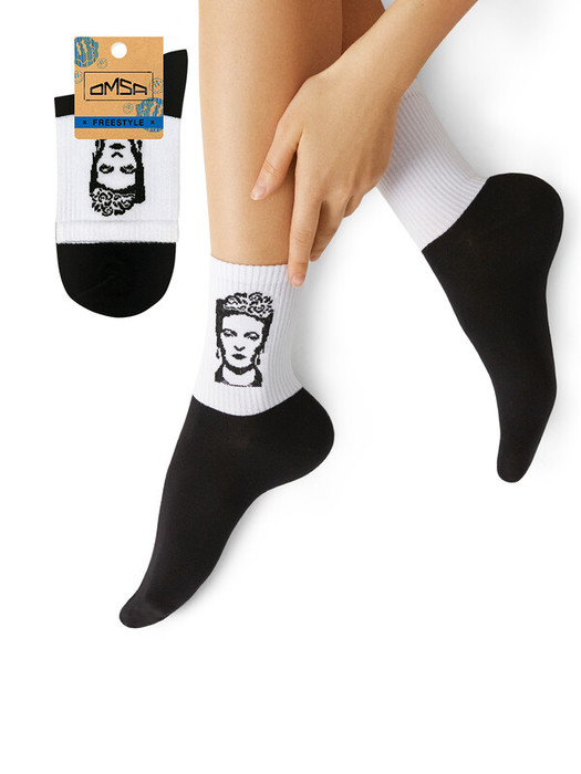 Лаконичный дизайн и авторский оригинальный принт с изображением Фриды и Сальвадора Дали – это беспроигрышное сочетание для создания неординарного образа. Носки OMSA Free Style – незаменимый аксессуар для самовыражения.