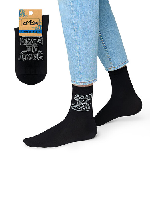 Носки унисекс OMSA с трендовыми надписями «Shake it OFF» и «Don't be fake» на резинке. В составе - высококачественный хлопок, который позволяет коже дышать, отлично впитывает влагу и подходит даже для самой чувствительной кожи, и эластан, который обеспечивает превосходное облегание. Удобная резинка и кеттельный (плоский) шов на мыске создают дополнительный комфорт.