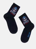 Детские носки для мальчика OMSA KIDS CALZINO 23Р65  с принтом   динозавров.. Всесезонная модель  средней высоты  паголенка из высококачественного  гребенного хлопка. Модель представлена в  четырех модных и актуальных в этом сезоне  цветах.