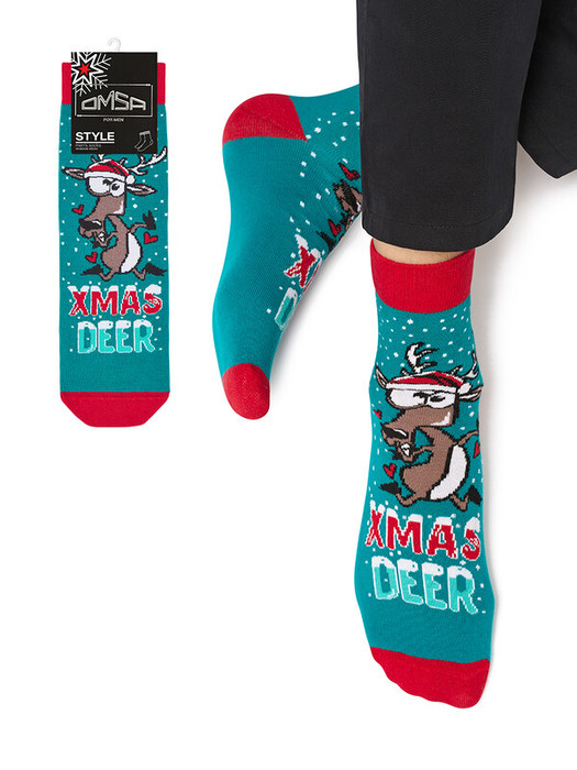 Мужские носки с красочным новогодним рисунком. Изготовлены из высококачественного мягкого хлопка, который превосходно пропускает воздух, приятно ощущается на теле и походит для чувствительной кожи.
