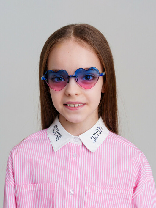 Трендовые очки в форме сердца, облегченные без оправы. Солнцезащитные очки с фильтром Cat3 для девочки подростка. Ширина оправы - 132мм, длина дужки - 140мм. Обхват головы 54-56см. Тёмные фильтры блокируют 85% солнечных лучей. Очки с розовыми линзами хорошо подходят для условий меняющегося освещения (то свет, то тень). Двухцветные градиентные прозрачные линзы не закрывают глаза, а  делают их более красивыми. Очки транспортируются в картонной коробке. В комплект входит фирменный текстильный чехол из микрофибры, с помощью которого легко ухаживать за изделием.