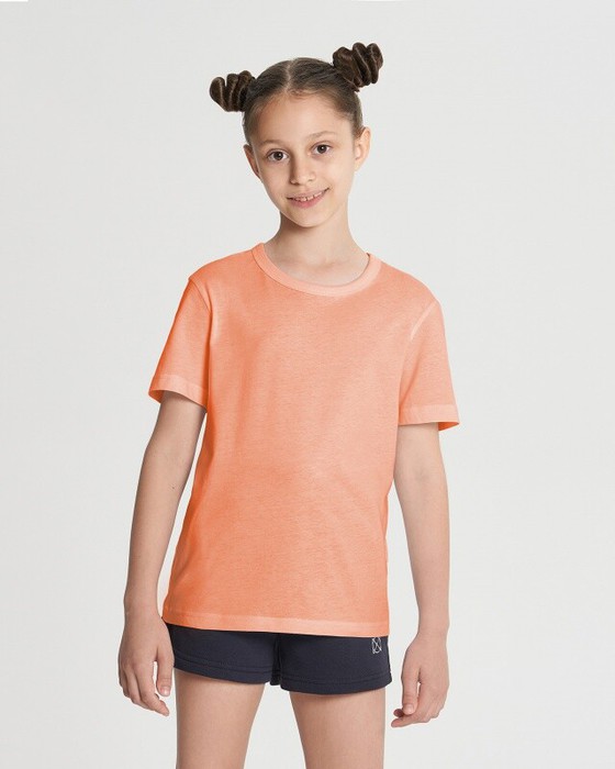 Футболка унисекс детская. Спущенное плечо. Втачной рукав. Укрепление горловины спинки и плечевых швов бейкой из основной ткани.
