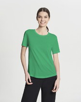 Женская футболка полуприлегающего силуэта с фигурным низом. Горловина окантована.