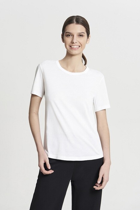 Футболка полупрелигающего силуэта, втачной рукав, горловина окантована рибаной