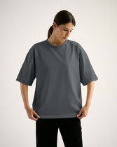 Boyfriend крой, укрепление по горловине спинки, круглый вырез. Горловина рибана. Отстрочка по горловине переда