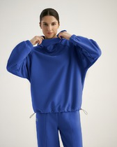 Худи женский свободного силуэта. Двойной капюшон с одним швом, притачные кокетки по переду, втачной рукав с локтевым швом. Карман "кенгуру".  Манжеты и пояс из кашкорсе.
