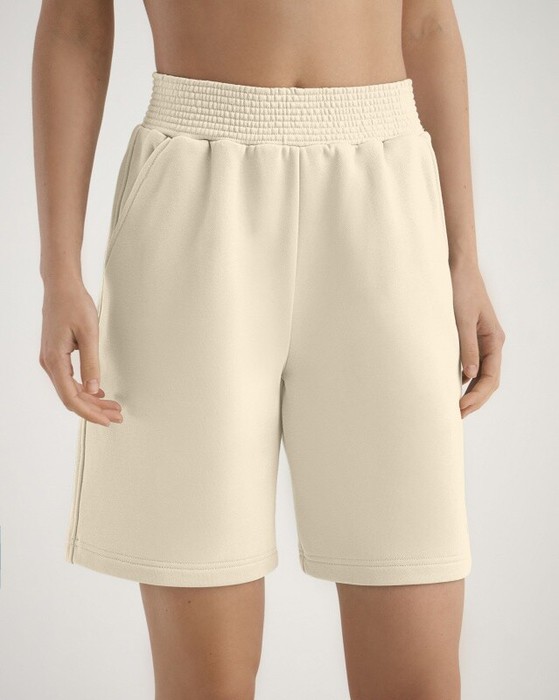 Удлиненные шорты. Пояс из основной ткани, отстроченный, боковые карманы.