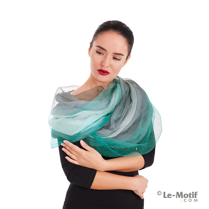 Совместные покупки Омск Женские аксессуары Платки — Палантин “Переливы воздушного шелка (серо-бирюзовый)“