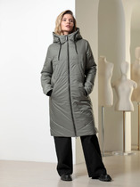Теплое, при этом лёгкое пальто станет любимой вещью Вашего зимнего гардероба. Пальто прямого силуэта с одношовными втачными рукавами, с капюшоном, с застёжкой спереди на молнию и кнопки по планке. По переду выполнены карманы, на рукаве декоративная нашивка.