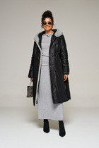В наступающем сезоне лидирующие позиции занимает стеганое пальто. Отличительной особенностью стеганых моделей пальто является простроченный материал в виде небольших квадратов или ромбов. Мы предлагаем пальто легкого прилегающего силуэта с поясом из мерцающих тканей. Центральная застежка на потайные кнопки, воротник-стойка. Модель дополнена элегантной брошью. Утеплитель синтепух-синтетический пух. Температурный режим до-5-10.