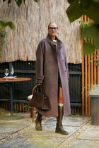 Пальто выполнено из шерстяной ткани, которая обеспечивает теплоизоляцию и защиту от ветра и влаги, подходит для межсезонья и теплой зимы. Двубортное, на подкладке.  Изделие рассчитано на температурный режим от +10 до -5 градусов. Модель прямого силуэта актуального покроя «летучая мышь»; предназначена для повседневного использования.
