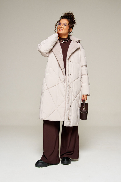 Зимнее, стеганое пальто прямого силуэта для ценителей стиля и практичности. Это отличное сочетание современных материалов и точного кроя.