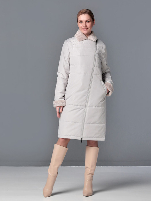 Демисезонное пальто средней длины прямого силуэта  подходит для женщин и девушек любого возраста. Ассиметричная застежка на двухзамковую молнию позволяет расстегнуть пальто как сверху, так и снизу, что актуально для корректировки ширины шага и при  подъеме по лестнице.  Удобно расположенные прорезные карманы  застегиваются на кнопку. Низ втачного рукава и воротник "английского" типа с лацканами выполнены из мягкого эко-меха, который хорошо стирается на рекомендованном режиме и не меняет свой внешний вид после высыхания. Плащевая ткань имеет водоотталкивающую пропитку, которая выдержит небольшой осенний дождь или снег. Хорошо зарекомендовавший себя утеплитель "Холлофайбер", плотностью 150 гр/м, защитит от холода и ветра. Подкладка в изделии - в мелкую полоску. Выбирайте понравившийся цвет, добавьте  аксессуары и наслаждайтесь стильной и комфортной осенью!