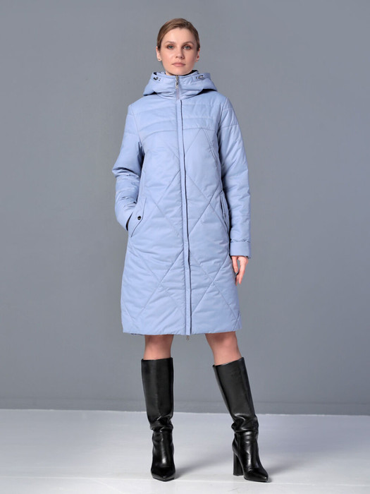 Демисезонное пальто средней длины прямого  силуэта с возможностью приталивания по спинке с помощью кулиски. Застежка - на двухзамковую молнию, которую можно расстегнуть как сверху, так и снизу. Модель такого пальто подходит для девушек и женщин разной возрастной категории. Декоративные строчки красиво подчеркивают и "вытягивают" силуэт. Длина втачного рукава регулируется отворотом. Воротник - уютная стойка, переходящая в капюшон.  Удобно расположенные карманы застегиваются на молнию. Есть внутренний кармашек, тоже на молнии. Плащевая ткань, из которой выполнено изделие, имеет водоотталкивающую пропитку, выдерживающую небольшой  дождь, снег и ветер. Хорошо зарекомендовавший себя утеплитель " Холлофайбер", плотностью 150гр/м, защитит от холода. Подкладка в изделии выполнена из ткани в мелкую полоску.
