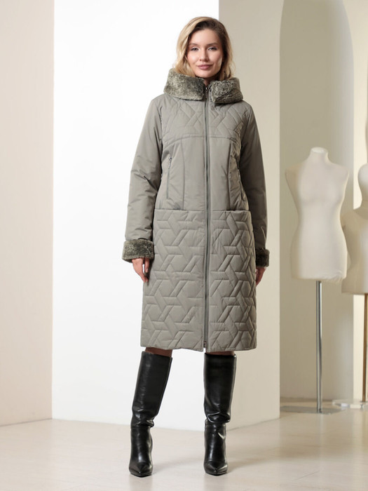Совместные покупки Омск Женская одежда Пальто — Пальто DizzyWay 25402 серый хаки
