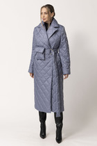 Пальто женское плащевое утепленное, стеганное на утеплителе ISOSOFT 250гр. прямого силуэта, на подкладке, с капюшоном, длиной ниже колена. Застежка на молнию. Перед с наклонными карманами, застегивающиеся на молнию. По борту и карману отделочный кант. Рукав втачной, двухшовный.