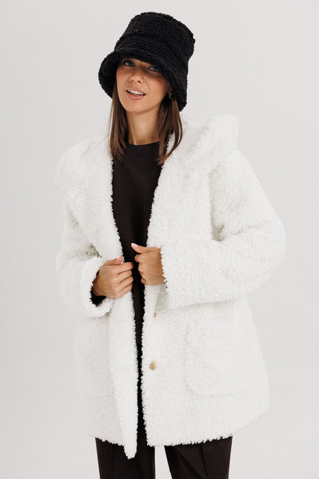 Сегодня на повестке дня – модное пальто! Поскольку половина золотой осени почти прошла, актуальность пальто достигает своих вершин. в виде однобортного пальто выше колен, стильный , в модели кокон, трендовый. Это пальто элегантно и лаконично, нет слишком замысловатых форм и броского декора. Свободный силуэт со слегка заниженной линией плеча, рубашечный покрой, застежка центральная на петли и пуговицы и необычный капюшон-воротник. На полочке наклонно расположены накладные карманы. Рукав с широкой подгибкой, которая может быть использована как отложенная манжета.