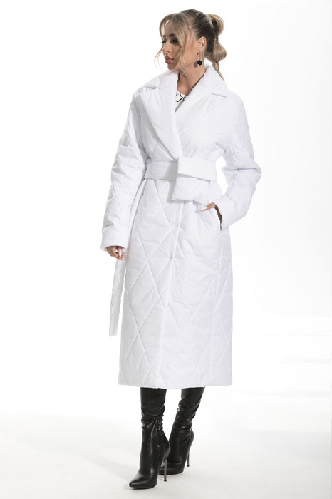 Пальто утепленное с центральной двубортной застежкой на пришивные кнопки, отложным воротником и лацканами. В боковых швах- карманы. Спинка цельная.. Рукав втачной, двухшовный. Пальто со съемным поясом и декоративной сумочкой.
