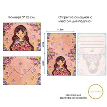 Открытка + конверт с 3D-рисунком ДЕВОЧКА С БУКЕТОМ