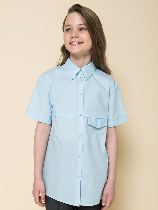 Школьная блузка прямого силуэта для девочки. Преобладающий в составе ткани хлопок делает эту модель мягкой, дышащей и комфортной для ребёнка. Благодаря полиэстеру изделие сохраняет форму и превосходный внешний вид. На спинке кокетка с защипом - свобода движения, комфорт в течение дня.  По переду под кокеткой имитация кармана в виде декоративного клапана – актуально и стильно. Воротник украшают декоративные пуговицы — изюминка модели. Рукав с отворотом - оригинально. Практичная и универсальная модель благодаря лаконичному дизайну великолепно сочетается с различными брюками и юбками. Отличный вариант детской блузки для школы.
