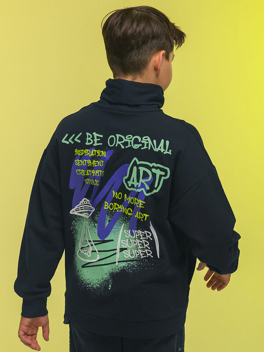 Стильная водолазка на мальчика. Лонгслив актуального оверсайз-силуэта со спущенным плечом подарит ребёнку комфорт и не будет стеснять его движений. Джемпер с воротником типа «хомут». Его можно носить двумя способами: в два сложения — как у классической водолазки — и без отворота — стильная небрежность. В боковых швах предусмотрены удобные карманы для мелочей. По низу изделия пояс из основной ткани. На рукавах манжеты, также из основной ткани. На них есть отверстия для большого пальца — можно носить как митенки или как обычные манжеты. Спинка джемпера немного длиннее переда. За водолазкой легко ухаживать. В составе ткани (футер с начёсом) преобладает высококачественный хлопок — изделие приятно на ощупь и прекрасно пропускает воздух, давая коже ребёнка дышать. Благодаря эластану модель отлично сохраняет форму в течение долгого времени. Водолазка детская с принтом по преду и спинке. Забавные принты в трендовом стиле граффити мягкие и устойчивые — великолепно переносят частые стирки. Надписи переводятся: «вдохновение, настроение, творчество, стиль, больше никакого скучного искусства», «будь оригинальным, искусство». Джемпер выполнен в универсальном чёрном цвете, его легко сочетать с любыми брюками. В линейке представлены следующие размеры: 7 (122); 8 (128); 9 (134); 10 (140); 11 (146). Водолазка с горлом подходит младшим школьникам и подросткам. Она идеальна для прогулок, активного отдыха, его можно носить дома. Такие джемперы подходят для круглогодичного применения: летом, осенью, зимой, весной и демисезон. Это замечательный подарок сыну, внуку, племяннику или брату на День рождения и любой другой праздник.