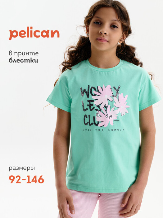 Совместные покупки Омск Детская одежда Футболки, майки — Pelican Футболка для девочек GFT3389/2 Ментол