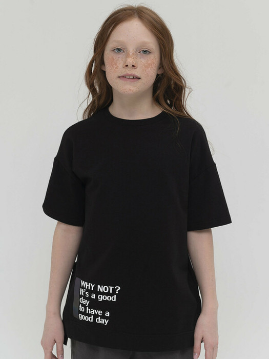 Футболка для девочки. Натуральный хлопок в составе позволяет телу дышать, ткань мягкая, приятная на ощупь, не растягивается и не боится частых стирок. Прямой силуэт, спущенное плечо для комфорта и свободы движений. Внизу перепад длин и боковые разрезы. Широкая обработка основной тканью низа лонгслива – стильно выглядит, комфортно носится. Фишка модели – текстовый принт и серая светоотражающая полоска, которая становится разноцветной при фотовспышке. Отлично подходит для создания стильного школьного образа и на каждый день вне школы.
