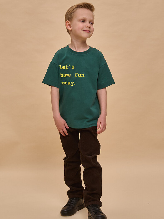 Детская футболка для мальчика. Комфортная майка свободного объёма со спущенным плечом не будет стеснять движений ребёнка. Вырез горловины обработан эластичной рибаной (ткань в рубчик) — она прекрасно держит форму, не растягивается, при этом ребёнку удобно надевать и снимать футболку. Изделие неприхотливо в уходе. Футболка детская с принтом в актуальном университетском стиле по переду. Надпись переводится: «давайте веселиться сегодня». Принт эластичный и прочный, не боится частых стирок. В составе ткани 100% хлопка — майка мягкая, дышащая, приятная на ощупь. Футболка для мальчиков выполнена в универсальном цвете, её легко комбинировать с различными брюками, шортами. Детские футболки с принтом подходят как для маленьких мальчиков, так и для подростков. Оверсайз-футболка для мальчика подходит для любого времени года, её можно носить как летом, так и в холодное время года в качестве среднего слоя одежды. Помните о правильном уходе за изделием: рекомендуется стирать при температуре не выше 30 °C, без предварительного замачивания, с изнанки. Это поможет сохранить качество и цвет футболки на длительное время.