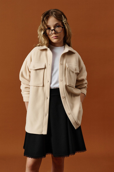 Рубашка  для девочки из флиса. Куртка модного оверсайз-силуэта со спущенным плечом подарит ребёнку комфорт и свободу движения. Классическая застёжка на пуговицы. Стильно и практично. Манжеты рукавов застегиваются на пуговицу. Накладные карманы с клапаном застугиваются на пуговицу — удобно пользоваться. Модель однотонная, без принта. Изделие неприхотливо в уходе. Одежда из флиса тёплая, лёгкая, мягкая, просто стирается и быстро сохнет, не выгорает и не скатывается, сохраняет первозданную форму в течение длительного времени. Толстовку можно носить девочкам в садик и подросткам в школу. Рубашку можно носить круглогодично: летом, осенью, зимой, весной и в демисезон.