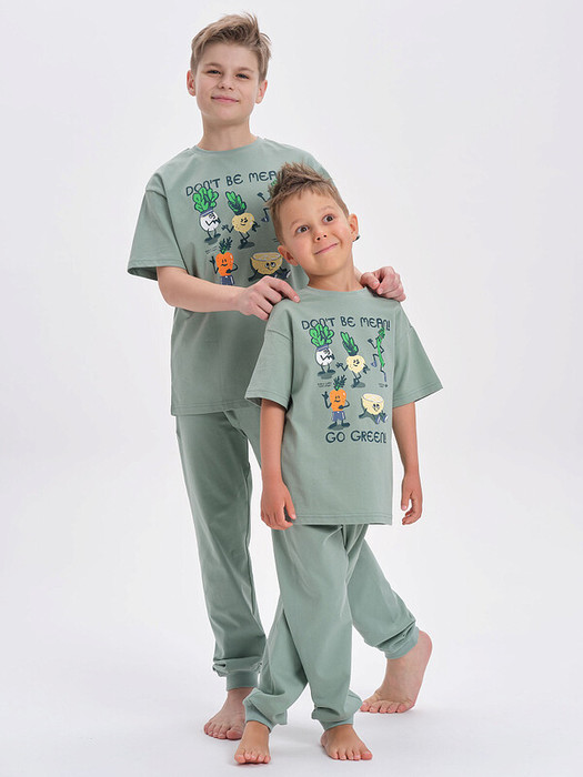 Уютная пижама для мальчика. Изделие выполнено из 100% хлопка — идеальный вариант для детской пижамы. Ткань из хлопка приятна на ощупь и превосходно пропускает воздух, позволяя коже ребёнка дышать. В пижаме из хлопка ребёнку будет комфортно, даже если он сбросит одеяло. Футболка и брюки умеренного объёма, рукава свободные — пижама очень удобна для сна. В поясе брюк мягкая и широкая резинка — не перекручивается и не давит. Манжеты брюк и отделка горловины джемпера из эластичной рибаны — комплект удобно надевать и снимать. А также резинка отлично сохраняет форму в течение долгого времени. По переду забавный принт — порадует любого мальчишку! Принт мягкий и эластичный, отлично переносит многочисленные стирки. Комплект подходит для сна как дома, так и в детском саду — прекрасный выбор для вашего ребёнка!
