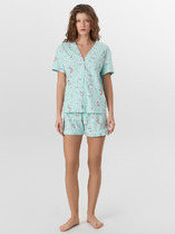 Пижама женская с шортами. В составе ткани преобладает высококачественный хлопок — комплект для сна мягкий, гипоаллергенный и хорошо пропускает воздух. В хлопковой пижаме вам будет комфортно и уютно во время сна. Эластан помогает изделию надолго сохранить первоначальную форму. Майка свободного кроя на широких бретелях дарит комфорт и свободу движений. Шорты свободного кроя, средней длины – для удобства и комфорта. Шортики женские на широкой эластичной резинке – она не давит и не перекручивается. Хлопковая пижама украшена милым, «няшным» принтом в виде забавного зайчика в очках, надписи переводятся: «хорошая атмосфера», «сделай сегодняшний день счастливым» — почувствуйте себя беззаботной девчонкой. Пижамный костюм неприхотлив в уходе. Принт эластичный и мягкий, легко переносит частые стирки. Милая пижама подходит как для сна, так и просто для отдыха дома. Помните о правильном уходе за изделием: рекомендуется стирать при температуре не выше 30 °C, без предварительного замачивания, с изнанки. Это поможет сохранить качество и цвет пижамы на длительное время.