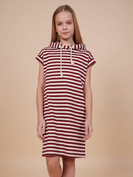 Детское платье худи в полоску для девочки. Платье в спортивном стиле А-силуэта подойдёт для любого типа фигуры. Это идеальный вариант для летнего отдыха — благодаря капюшону нет необходимости в панаме, голову ребёнка не напечёт солнцем. Капюшон двухшовный, красиво и анатомически правильно садится по голове. Есть возможность регулировки капюшона шнуром. Платье-тельняшка — супертренд сезона! Платье умеренного объёма со спущенным плечом подарит ребёнку комфорт и свободу движения. Проймы с широкими притачными манжетами, они отлично держат форму, платье выглядит аккуратно и стильно. В боковых швах имеются карманы  — удобно пользоваться. Платье в полоску (полоска вытканная, не принт) украшено красивым принтом в ботаническом стиле по спинке. На принте изображены какао-бобы. Надписи переводятся: "природа", "шоколадное дерево", "вечнозелёное дерево", "какао-бобы содержат вещества, которые стимулируют выработку эндорфинов и серотонина (гормоны счастья)". Принт мягкий и стойкий, не боится частых стирок. За платьем легко ухаживать. В составе ткани 100% высококачественного хлопка — платье мягкое и дышащее. Изделие представлено в двух актуальных вариантах цвета: тёмно-синем и бордовом. Размерная линейка: 1 (86); 2 (92); 3 (98); 4 (104); 5 (110); 6 (116); 7 (122); 8 (128); 9 (134); 10 (140); 11 (146). Платье-худи укороченное идеально для девочек дошкольного и младшего школьного возраста, а также девочек-подростков. Подходит для детского сада, прогулок, отдыха, дома. Платье можно носить летом, а также весной и осенью (демисезон), зимой в качестве домашней одежды. Модное платье — стильный и практичный подарок дочери, внучке или сестре на любой праздник. Выбирайте нужный размер по таблице размеров на фото. Цвет товара на экране вашего устройства может отличаться от цвета изделия вживую.