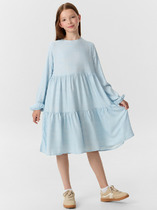 Платье для девочек из футера свободного силуэта со слегка спущенным плечом, зауженное книзу, боковые швы переведены на перед, перепад длины переда и спинки, рукав умеренного объема, горловина и манжеты рукавов из рибаны с люрексом. Мягкий эластичный принт с серебряным блеском. Перевод Позволь своему сердцу петь и Музыка сердца.
