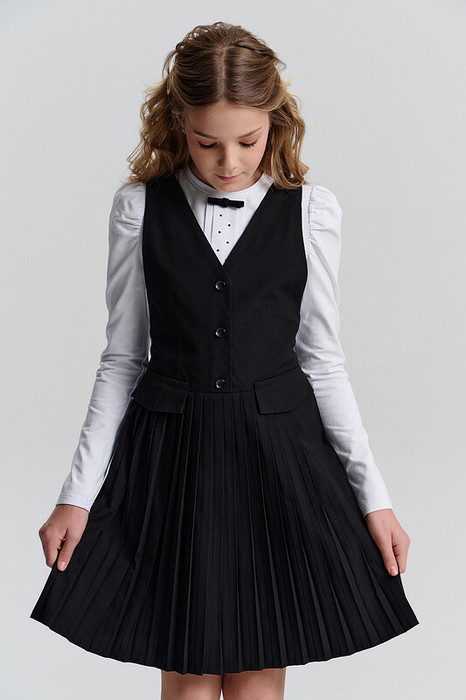 Швейный сарафан с юбкой в мелкую плиссировку — удобный и стильный выбор для школы и не только.