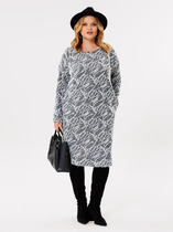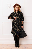 Платье женское из футера силуэта кокон с сильно опущенной линией плеча, горловиной из рибаны и устойчивым принтом из золота. По рукавам и низу изделия актуальный элемент street style открытый срез и декоративная строчка, которые придают легкость изделию. Перевод Делай больше того, что делает тебя счастливым. Новая я.