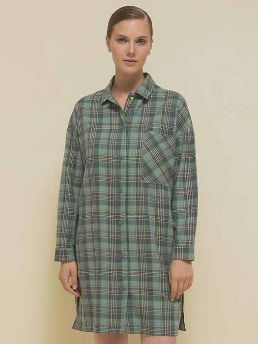 Женское тёплое платье-рубашка из фланели. Домашняя одежда из фланели в клетку — один из актуальных трендов этого сезона. Халат-рубашка женский оверсайз-силуэта со спущенным плечом подарит вам ощущение комфорта и уюта. Платье с длинными рукавами застёгивается на кнопки спереди по всей длине. Изделие дополнено классическим рубашечным отложным воротником и удобным накладным карманом для мелочей на груди. Рубашка лаконичного дизайна, без принта. За ней легко ухаживать. В составе 100% высококачественного хлопка — платье тёплое, мягкое и отлично дышит. Халат фланелевый представлен в красивом зелёном цвете. Размерная линейка: XS (42); S (44); M (46); L (48); XL (50). Такая рубашка подходит женщинам, девушкам, девочкам-подросткам с любым типом фигуры. Отличное платье на осень, зиму и весну для дома и отдыха. Платье свободного кроя с длинным рукавом — прекрасный подарок для мамы или сестры на Новый год или любой другой праздник.