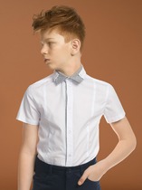 Рубашка для мальчика школьная - остается незаменимой частью гардероба. Детская рубашка представляет собой полуприлегающий силуэт с рельефами от проймы по переду и спинке. Сорочка для мальчика дополнена воротником типа «Виндзор», который позволяет носить её как с классическим галстуком или галстуком-бабочкой, так и без них. Декорирована контрастной отделкой по стойке и внешнему краю воротника, внешней планке. Нижняя планка и декоративный кант вдоль планки выполнены из ткани в полоску, что придает рубашке стильный вид и выгодно отличает её от банальных однотонных моделей. Рубашка для мальчика имеет темный цвет отделки, что позволяет реже стирать изделие. В составе ткани преобладает высококачественный хлопок, который отлично пропускает воздух, давая коже дышать и не перегревая ребёнка. Полиэстер же обеспечивает сохранность формы изделия. Для школьных рубашек мы используем сорочечную ткань, плотностью 100 гр/м2. В ассортименте представлена рубашка на мальчика в синем, белом и голубом цвете, которые легко сочетаются с любыми брюками, пиджаками и жилетами. Стильная рубашка школьная - прекрасный выбор для повседневной носки в школу и более торжественных случаев. Рекомендуемые инструкции по уходу: стирать при температуре не выше 30 °С, без предварительного замачивания, с изнанки, расправить перед сушкой. Это поможет сохранить качество и цвет на длительное время. Выберите нужный размер, ориентируясь на таблицу размеров на фото. Помните, что цвет товара на экране вашего устройства может отличаться от реального цвета изделия.