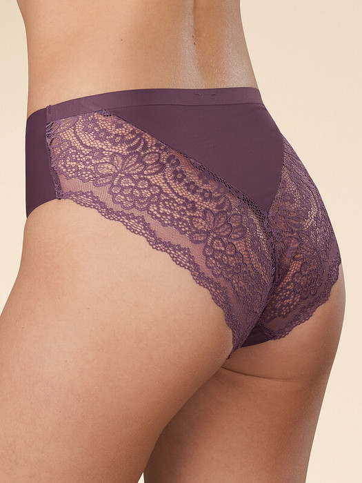 Женские трусы-слипы с высокой посадкой. Изготовлены по бесшовной технологии с минимум швов. Кромки по ноге и по талии подогнуты и приклеены, хлопковая приклеенная ластовица.  Нежное цветочное кружево придает модели утонченный вид. Продуманный крой трусов создает изящный силуэт. Модель оценят те, кто ищет незаметное и невесомое белье на каждый день или особого случая.