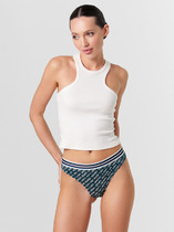 Женские трусы-слипы со средней посадкой. Приятная на ощупь ткань с высоким содержанием хлопка и небольшим содержанием эластана – трусы сохраняют форму и не выцветают даже после частых стирок.  Мягкая широкая обработка по линии талии кружевным эластиком – не вызывает дискомфорта и не передавливает тело. Нежное геометричное кружево актуально в этом сезоне. Модель подчеркивает изящество фигуры и создаёт комфорт. Идеально подходят для повседневной носки, для сна и для романтических встреч.