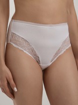 Женские трусы-слипы с высокой посадкой для влюбленных в красивый и активный образ жизни. Ткань с высоким содержанием хлопка и небольшим содержанием эластана. По линии талии мягкий принтованный эластик - не передавливает тело, не натирает кожу. Обработка по ноге эластиком для сохранения формы. Нежное геометричное кружево отражает тренд на умный дизайн.