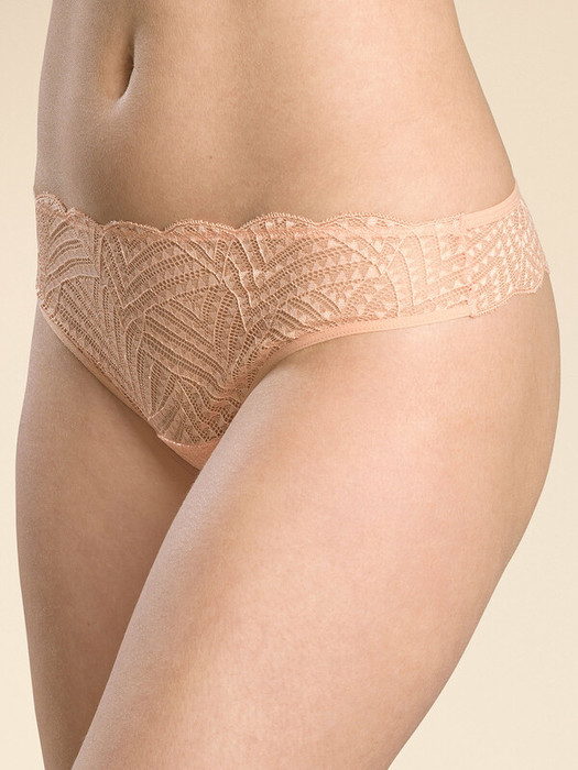 Женские кружевные трусы-стринги с низкой посадкой для влюбленных в красивый образ жизни. Эластичная и мягкая ткань позволяет избежать натираний и неудобств, кожа дышит.  Кружево с фестонным краем подчеркивает изящные линии тела и придает модели романтичные нотки.  Нежный кружевной узор придает женственности и изысканности. Вы можете создавать разные образы по настроению - от повседневных и классических, до соблазнительных.