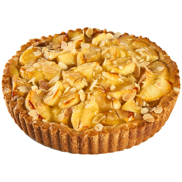 Ароматный яблочный пирог на основе песочного теста с огромным количеством хрустящих яблочных долек, декорированный миндальными слайсами.