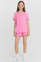 Пижама из кулирки для девочек майка + шорты. Майка типа «борцовка», черная окантовка, принт в виде котенка, сердец и надписей, узор из кошачьих морд. Короткие шорты, аналогичный узор. Может быть парой женской пижаме 1865 (продается отдельно). Размеры от 28 до 36. Возможна розница.