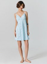 Пижама женская из гладкокрашенного трикотажного вискозного полотна, состоящая из футболки и шорт. Футболка - слегка расширенная книзу, с короткими рукавами покроя «реглан» и горловиной овальной формы. Проймы и горловина окантованы основным материалом. По срезу горловины выполнена небольшая сборка. Нижние срезы рукавов обработаны узкой обметочной строчкой. Шорты – свободного покроя, удлиненные, с эластичной тесьмой по талии.