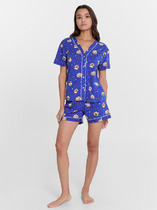 "Костюм-пижама для беременных и кормящих женщин. Футболка с V-образной горловиной, короткими рукавами, со сборкой на резинку спереди, под грудью. Шорты с уменьшенной высотой спереди для их комфортного расположения под животом, расширенные книзу.