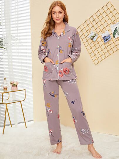 Совместные покупки Омск Женская одежда Пижамы, халаты — Пижамный набор с цветочным принтом на пуговицах