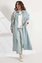 Длинный плащ прямого силуэта с рукавами покроя реглан и застежкой на двухзамковую молнию. Воротник - стойка, переходящая в капюшон.  Многочисленные кулиски, большие карманы и легкая резинка по низу рукава - все эти детали подчеркивают спортивный стиль, актуальный в этом сезоне.