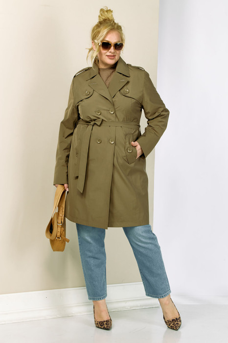 Современный, модный и стильный плащ на весенний период. Изготовлен из плащевой мягкой ткани, без утеплителя, на подкладке. Застежка двубортная. Горловина оформлена широким воротником пиджачного типа. Рукав втачной, длинный, что делает его практичным выбором для переменчивой погоды. Длина регулируется с помощью отворота. Передняя часть с отлетной кокеткой и двумя фунуциональными карманами на внутренних магнитах. Изделие прямого, классического кроя в комплекте со съемным поясом, который придает приталенный силует и элегантность. Спинка с отрезной кокеткой.