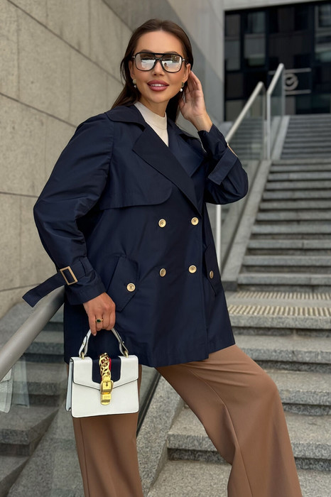 Укороченный плащ URS — это элегантная демисезонная модель, которая подойдёт для весны и осени. Короткий фасон и свободный силуэт делают плащ удобным и универсальным: его можно носить каждый день и использовать как часть делового гардероба.
