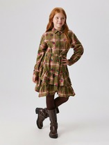 Платье для девочки из трикотажного хлопка с набивным рисунком. На спинке застежка-планка на двух кнопках. На полочке принт. Юбка со сборкой на талии. Спереди платье украшено декоративным бантом.